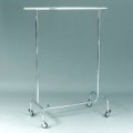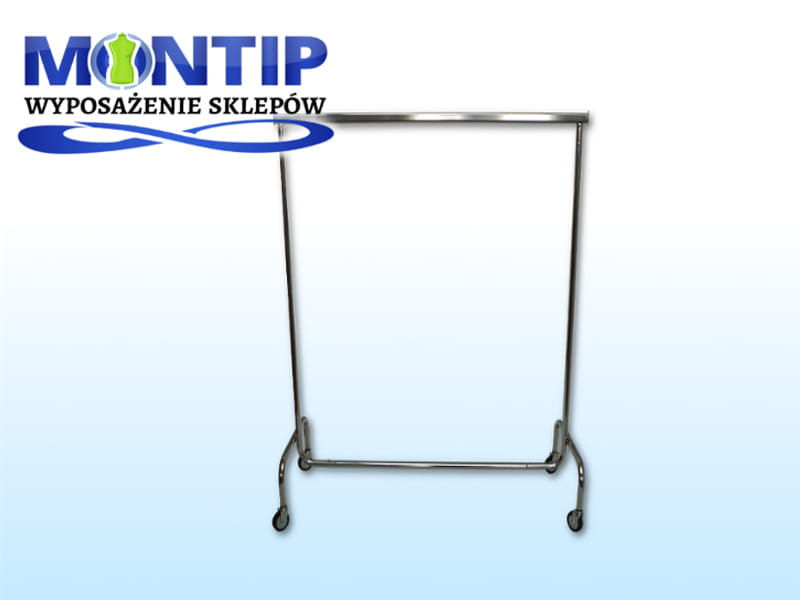 Stojak na odzież pojedyncza poprzeczka: - regulowana wysokość - kółka o gwincie M-8mm. Wymiary: Szerokość: 120 cm. + 2 wysuwane ramiona, każde o dł. 45cm. Głębokość: 50 cm Wysokość: od 112cm do 185 cm. Kolor: dolna część stojaka malowana proszkowo na kolor czarny, górna pokryta chromem galwanicznym.