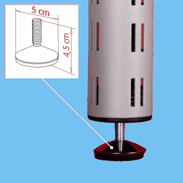 - Zastosowanie: Stopka z gwintem M10 wykorzystywana jest w systemie TUBE do stabilizacji nóg w konstrukcjach, takich jak regały, meble ekspozycyjne i inne systemy montażowe. Doskonała do nóg naściennych (1 szt.), przyściennych (2 szt.) oraz gondoli (2 szt.).