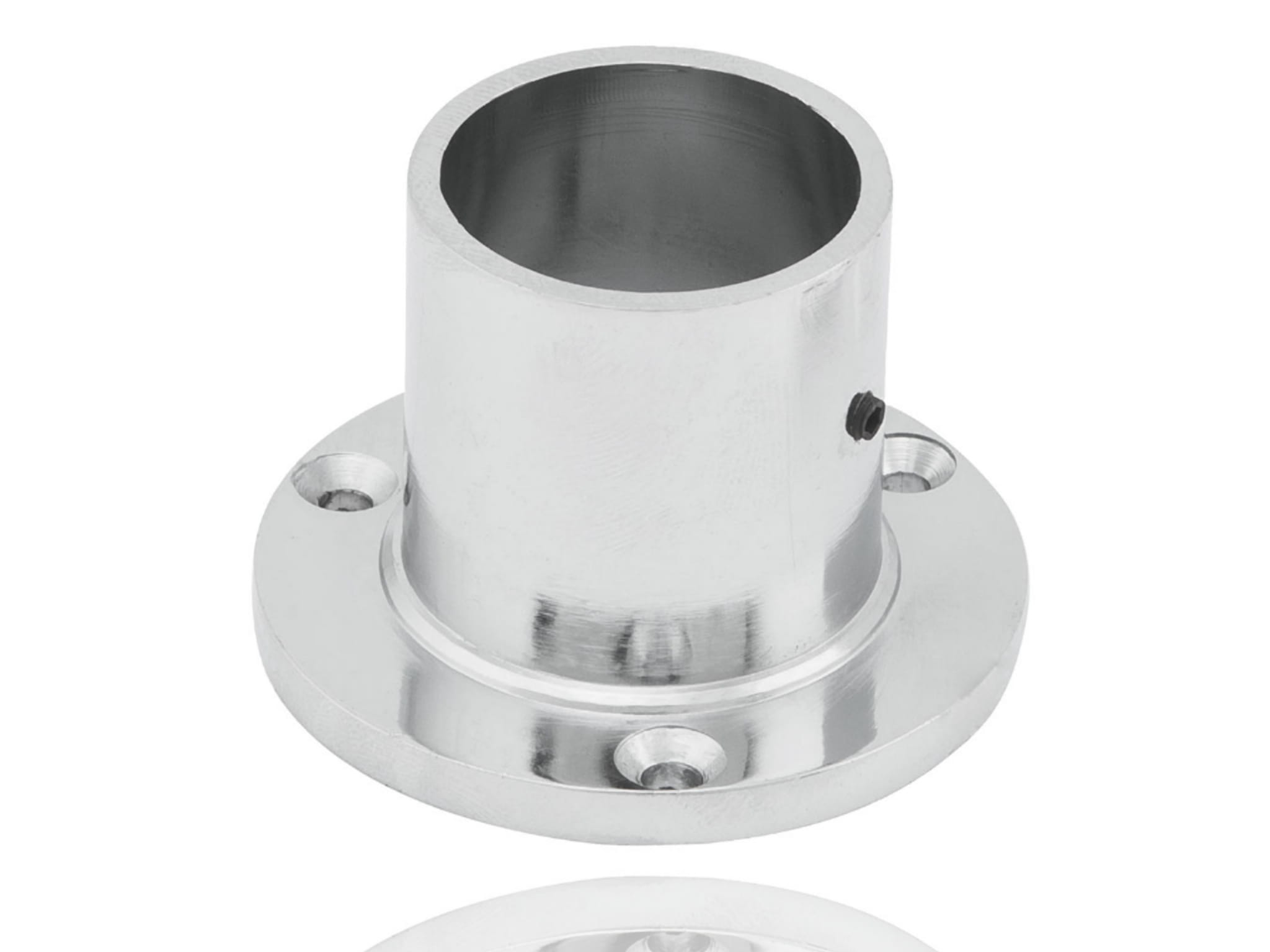 Wysokiej jakości stopka/rozetka do ściany z blokadą, przeznaczona do rur o średnicy 25 mm. Wykonana z wytrzymałego aluminium, pokrytego eleganckim chromem, zapewnia trwałość oraz estetyczne wykończenie.