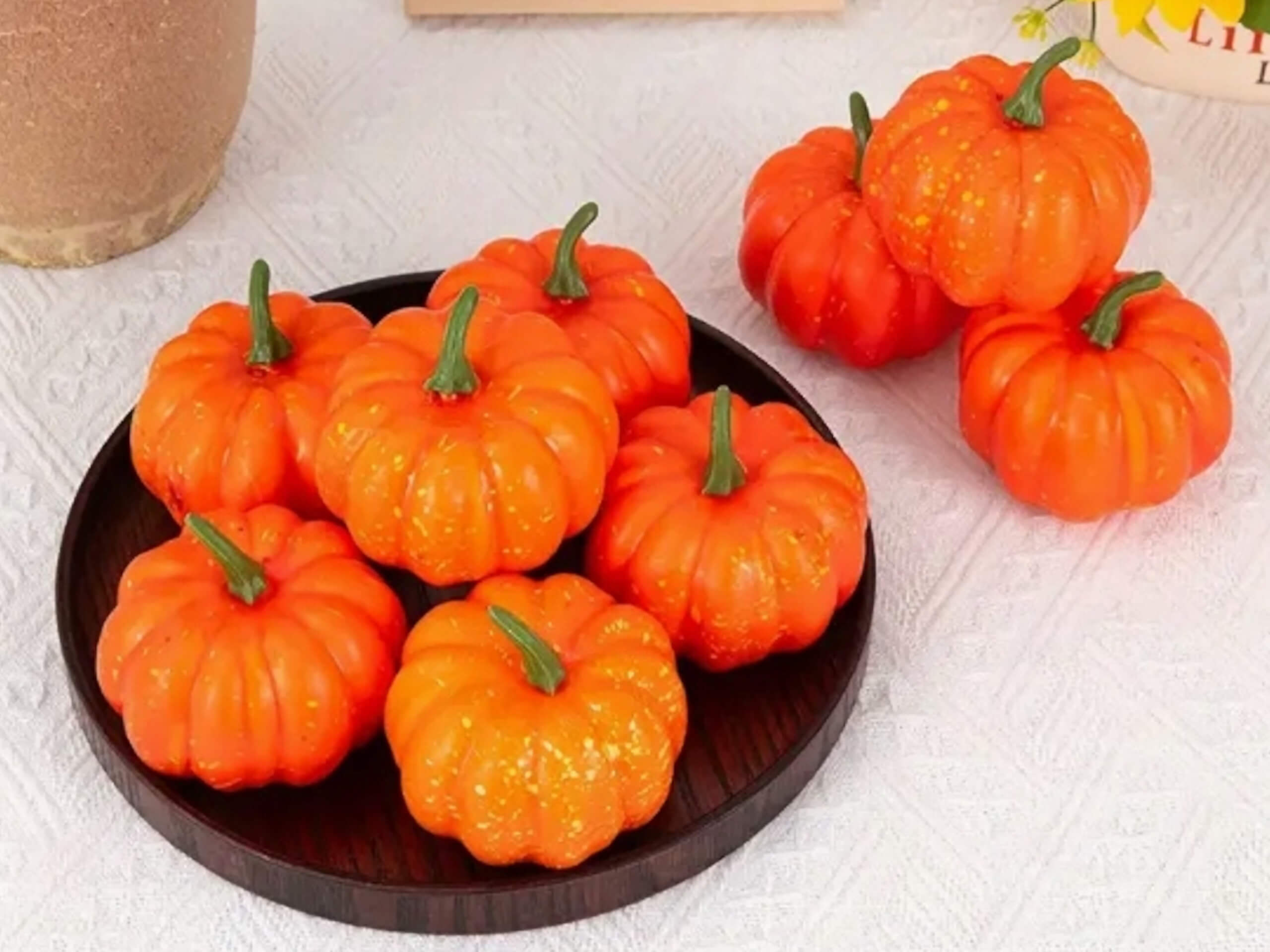 Wysoka jakość - wykonana z solidnego tworzywa sztucznego, które dobrze odwzorowuje strukturę prawdziwej dyni i zapewnia trwałość przez wiele sezonów. Starannie dobrane kolory są odporne na typowe użytkowanie wewnątrz i nie tracą intensywności. Powierzchnia jest łatwa w czyszczeniu — wystarczy przetrzeć wilgotną ściereczką.