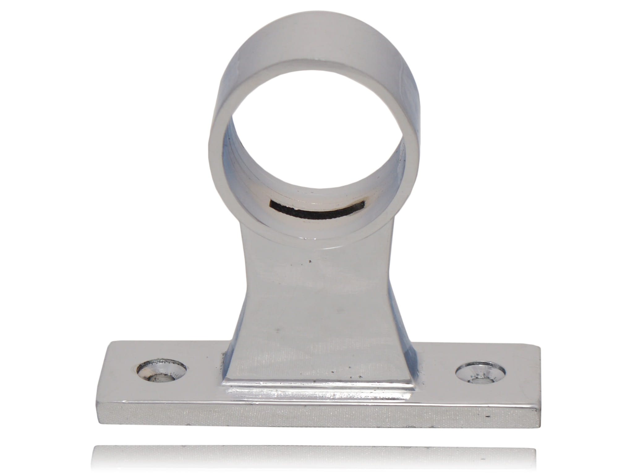 Końcówka mocująca chromowana, wysoka z blokadą dla rury fi 32. Stosowana również dla systemu balustrad. Wysokość całkowita ~ 4 cm Szerokość podstawy: 6 cm Kolor: chrom