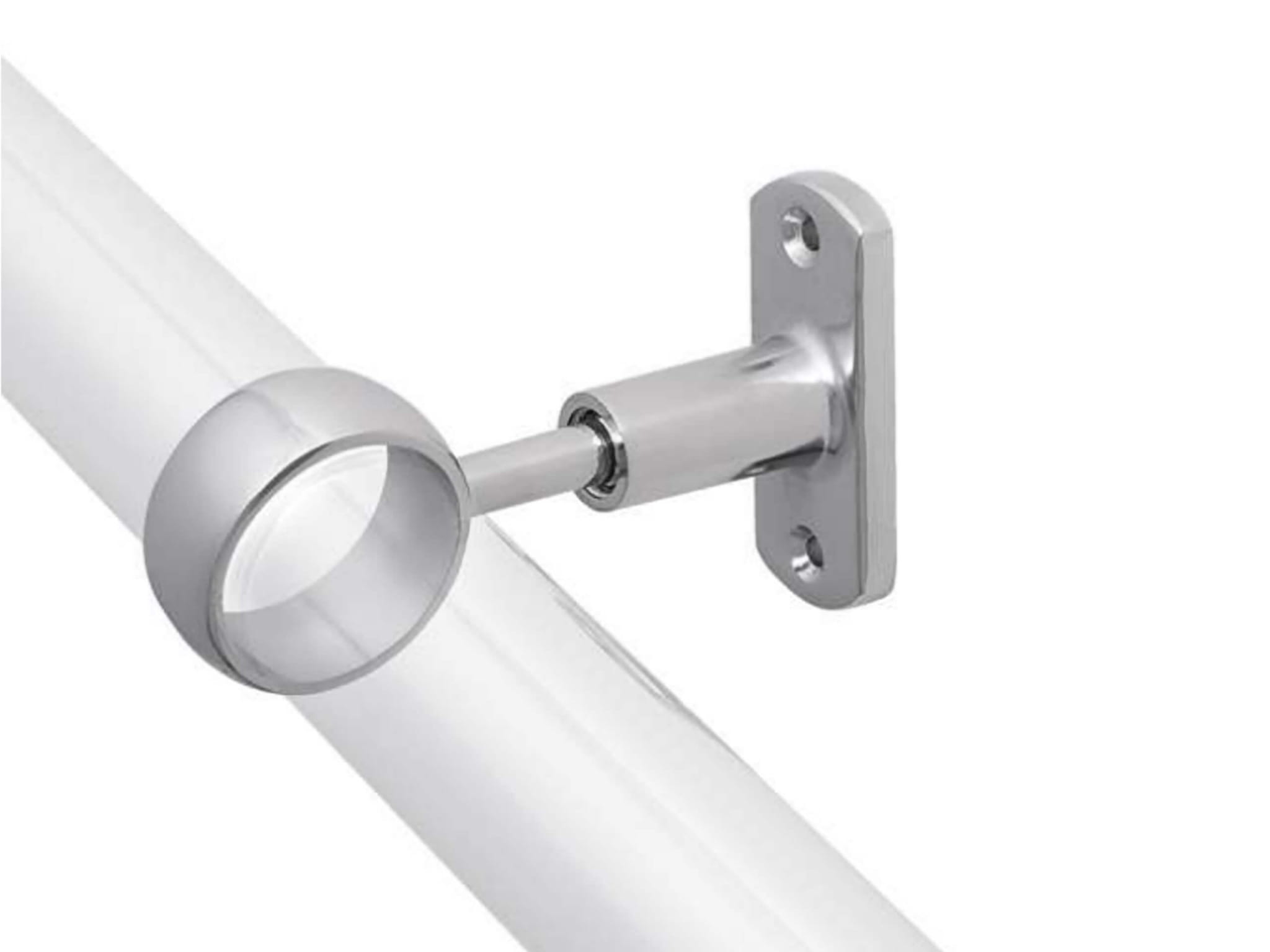 - Zastosowanie: uchwyt znajduje zastosowanie w systemach rurkowych, m.in. w sklepach, garderobach, showroomach oraz jako element ekspozycyjny lub wieszakowy. Dzięki możliwości regulacji dystansu od ściany pozwala na dopasowanie instalacji do różnych warunków montażowych i głębokości przestrzeni.