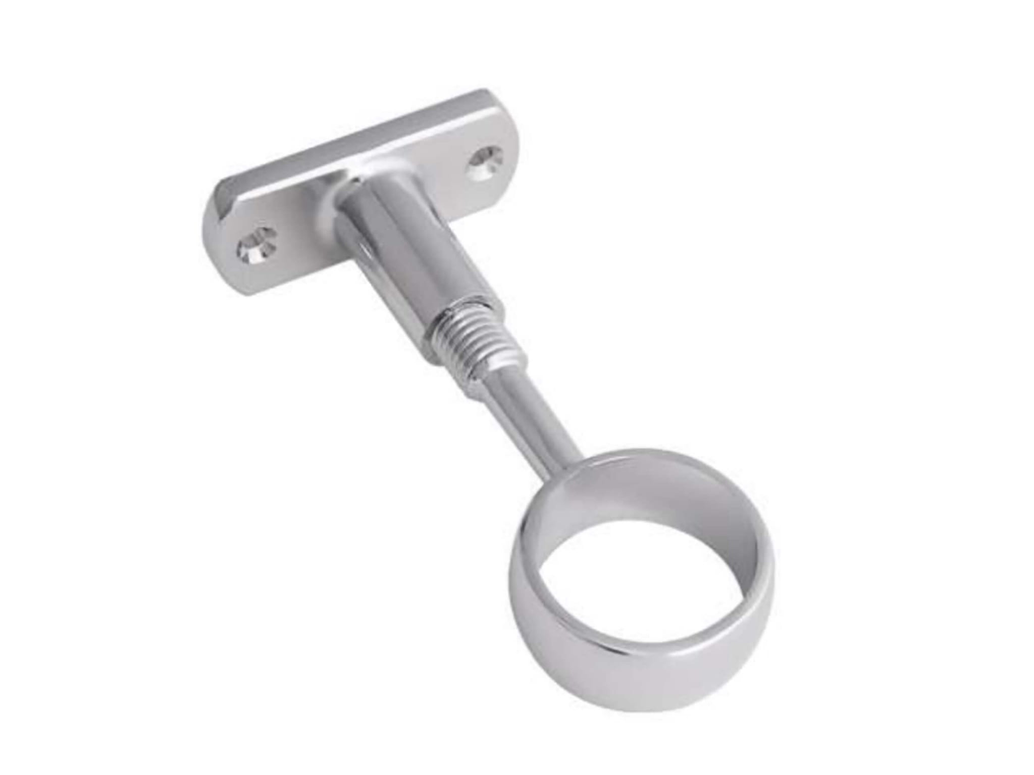 Uchwyt dystansowy końcowy ruchomy Kolor: chrom metalizowany Odstęp od ściany regulowany. Wymiar podstawy przykręcanej do ściany...