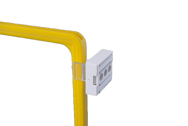 Uchwyt magnes równoległy do ramki reklamowej, wykonany z plastiku w kolorze białym. Idealny do montażu ramki reklamowej na metalowych regałach lub półkach, zapewniając stabilne mocowanie bez konieczności wiercenia.