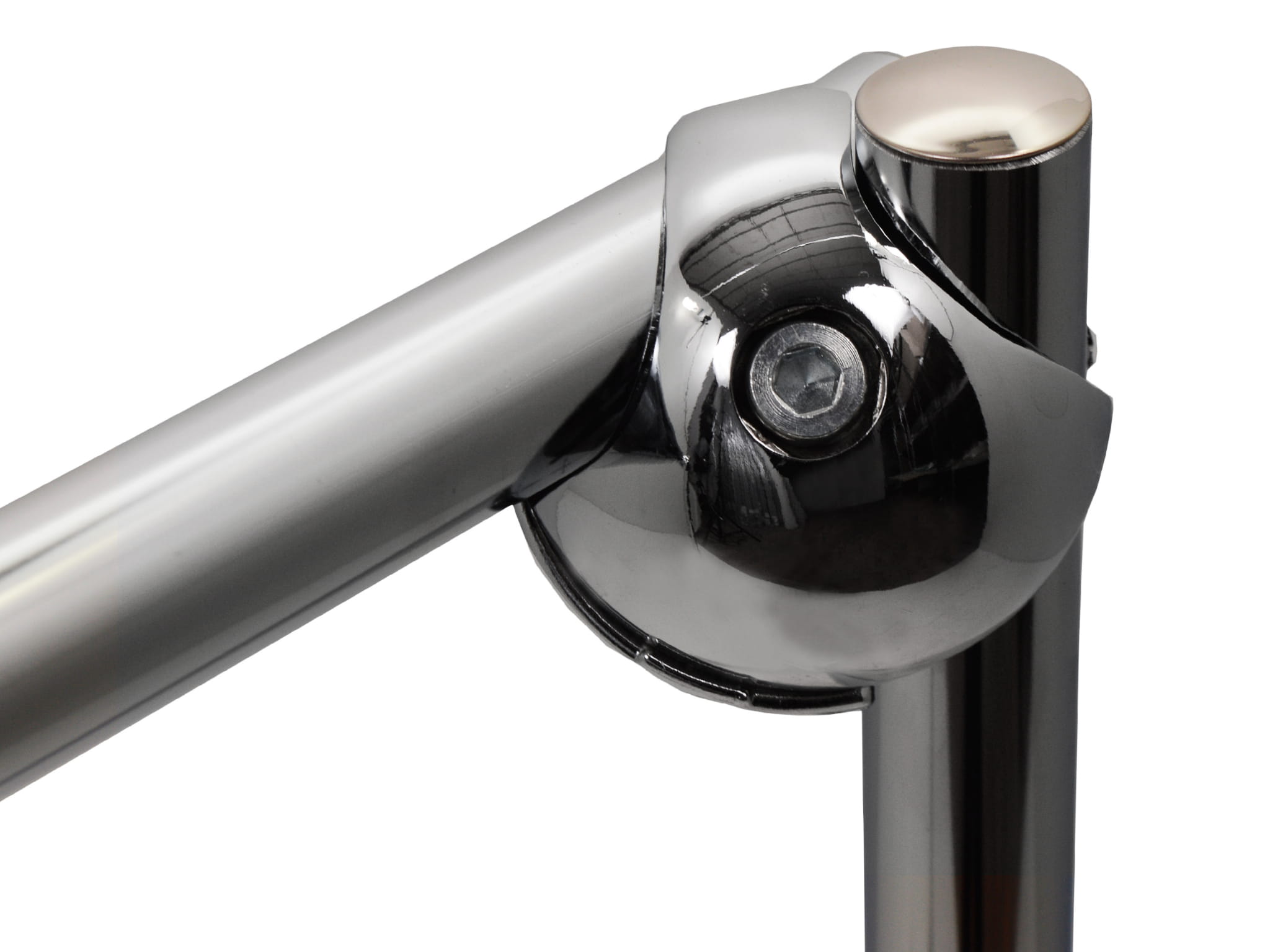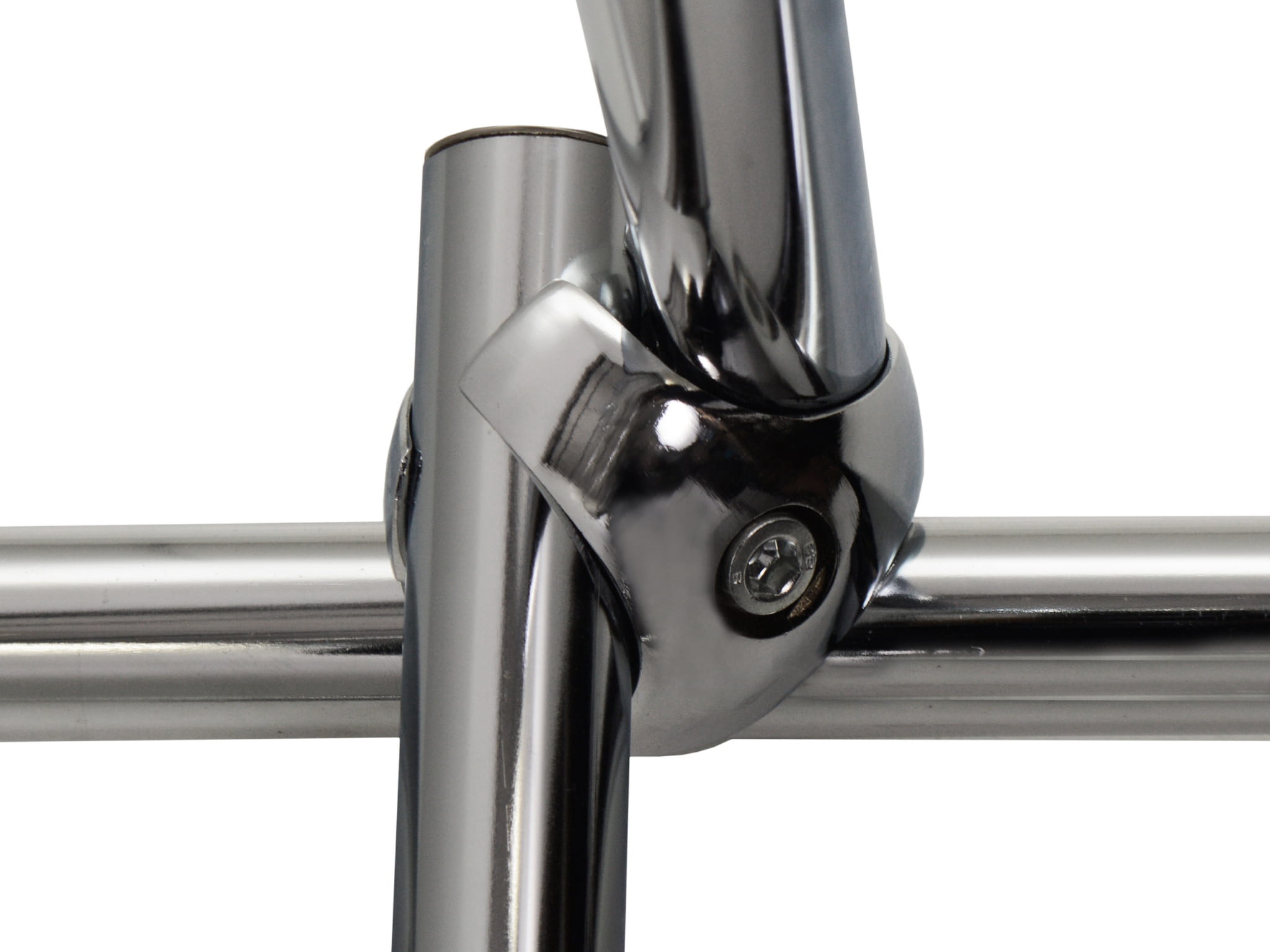 Wieszak wykonany z rury chromowanej fi 25. Stojak ze względu na swą prostotę i funkcjonalność idealnie nadaje się zarówno do garderoby w domu, jak i do sklepu.