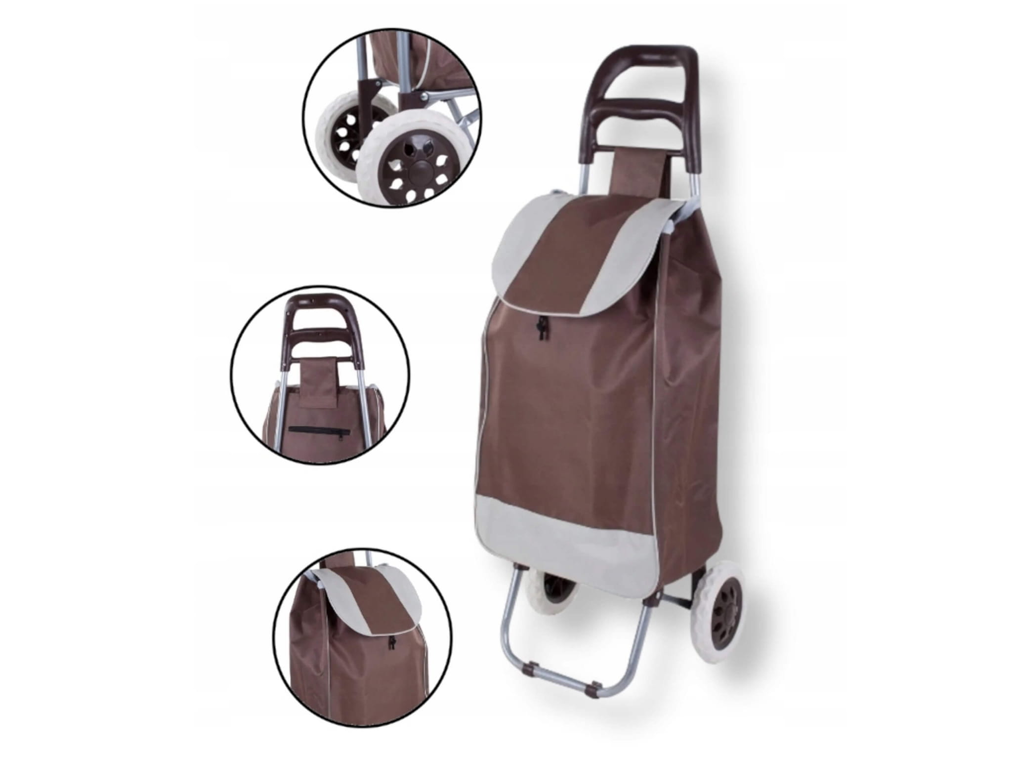 Wózek torba na zakupy na kółkach – lekki, wodoodporny, brązowy
